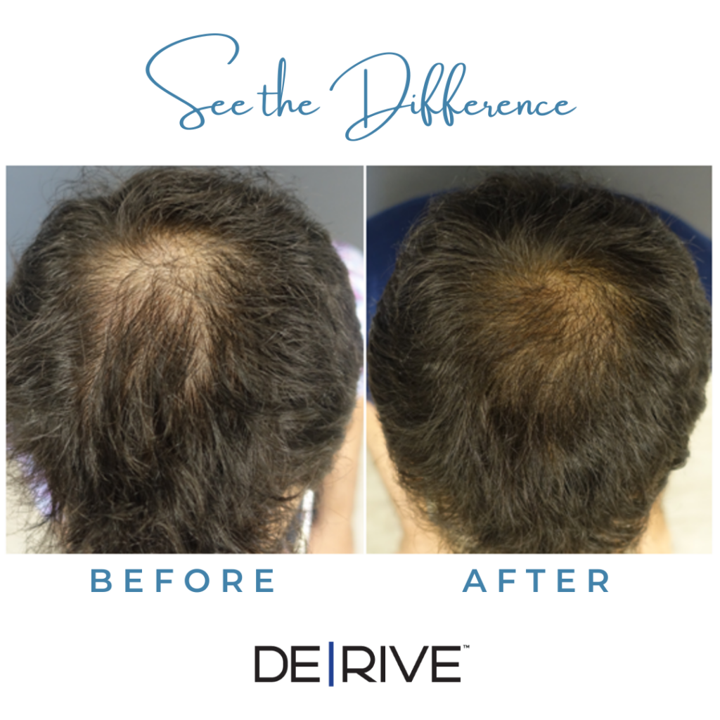 DE|RIVE uses plant-based extracellular vesicles to stimulate follicle activity, improve scalp health, and support stronger, thicker hair. This non-surgical, zero-downtime treatment feeds your scalp with growth-signaling nutrients that encourage healthy regrowth.